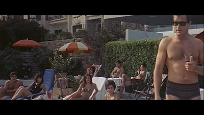 Secret Agent Fireball isn’t quite the cream of the Eurospy crop, but it’s emblematic of the genre nonetheless. Its action scenes are a cut above average, and it hits every mark you want from a good Eurospy movie. In a genre better loved for following a predictable formula than for transcending it, that’s pretty high praise. In fact, it’s easy to view as a template for the loving 2006 Eurospy parody/tribute OSS 117: Cairo Nest of Spies–even moreso than any of the actual Sixties OSS 117 movies. There’s a great, quintessentially Eurospy moment in the trailer for the sequel to Cairo Nest of Spies where star Jean Dujardin struts confidently through a poolside patio in swim trunks so snug lesser men would fear to don them. Not so Eurospy heroes. And Bob Fleming has a pretty directly analogous moment in Secret Agent Fireball, strolling poolside in his own crotch-hugging bathing suit, showing off his Peplem-toned body. Women in bikinis check him out appreciatively. "All they care about is your musk!" says his jealous friend. The scene is slightly repulsive, yet also slightly compelling and entirely appropriate. Like the movie as a whole, it’s the essence of Eurospy. If you like the genre to begin with, you’ll likely love Secret Agent Fireball.