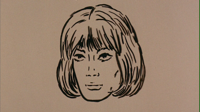 In addition to the structure, the film’s aesthetic also evokes comic books at every opportunity. Two animated sequences stand out: in one, we see the spread of Ginko’s police forces across a map of city streets leading into the freakout sequence. In another, Valmont’s men use an Identikit gizmo to recreate Eva’s face from a prostitute’s description. The hand-drawn face expands and contracts against multiple primary color backgrounds, changing many times before settling on a likeness not to Mell, but to the comic book depiction of her character. Both sequences play out to particularly trippy, discordant music.
