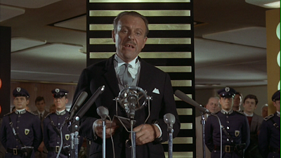 Leo takes Harry to "meet the boss," where Harry encounters a surprisingly small computer (for its day) in the middle of a very large, very empty room. It’s a Ken Adamish set, but actually designed by fellow Bond vet Syd Cain. We get more fantastically bizarre edits and disassociated audio: a conversation between Harry and Anya about some games being "more dangerous than others" occurs over violent footage of a hockey game; we then slam cut from one of the hockey confrontations to an extreme close-up of a virus culture in a microscope. The virus is what Harry unknowingly transported to Helsinki to begin with, and he can see it's part of a much larger plot, but can’t get a grasp on what that plot is.